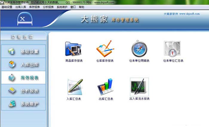 大熊家库存管理系统是一款灵活通用的库存管理软件,此软件界面设计简洁, 美观,其人性化的软件流程,使普通用户不需培训也能很快掌握软件操作使用方法,上手快速。此软件的基础设置十分灵活方便,出入库单项目可自由选择及随意调整位置,单据查询简单方便,报表统计、查询、打印功能十分强大。大熊家库存软件广泛适用于公司企业,门店等,是您企业进行信息化管理的强大工具。