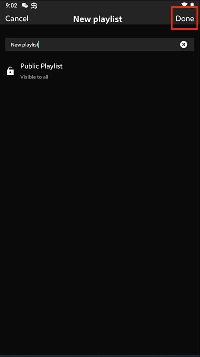 2. 输入歌单名称,接着选择“Done”,新歌单即创建成功。