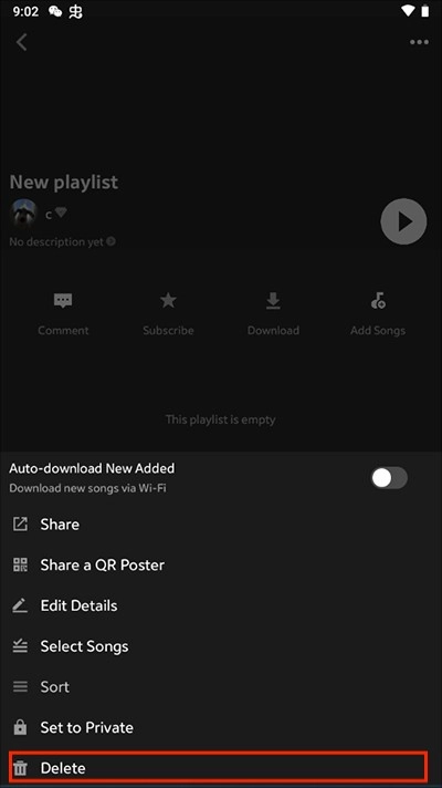 2. 点击“Delete”按钮,所选歌单便会被删除。