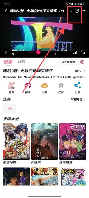 2、然后进入动漫播放界面,选择右上角的“tv”标志即可投屏