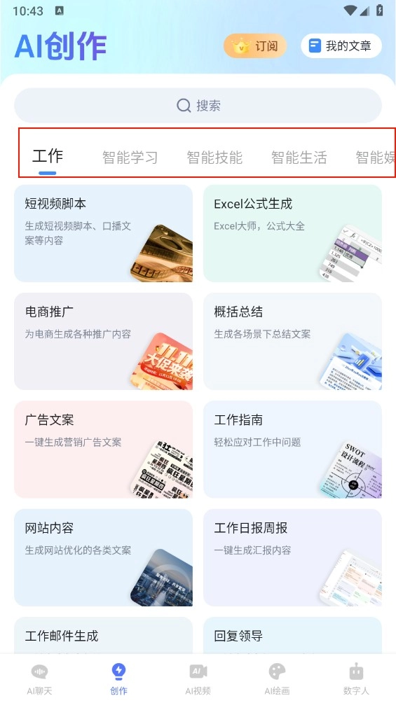 3、找到并进入“创作”板块,该板块内容广泛,涉及工具、学习、生活等诸多领域,点击进入就能开启创作之旅。
