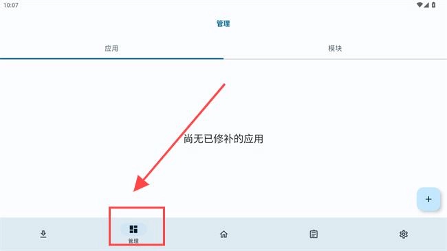 2、然后打开进入LSPatch框架,在底栏找到“管理”并点击。