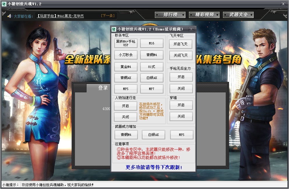 1、秒杀专区中,主武器只能修改一种,修改多了程序容易崩溃