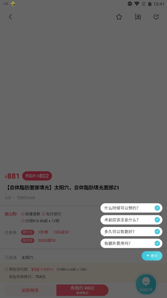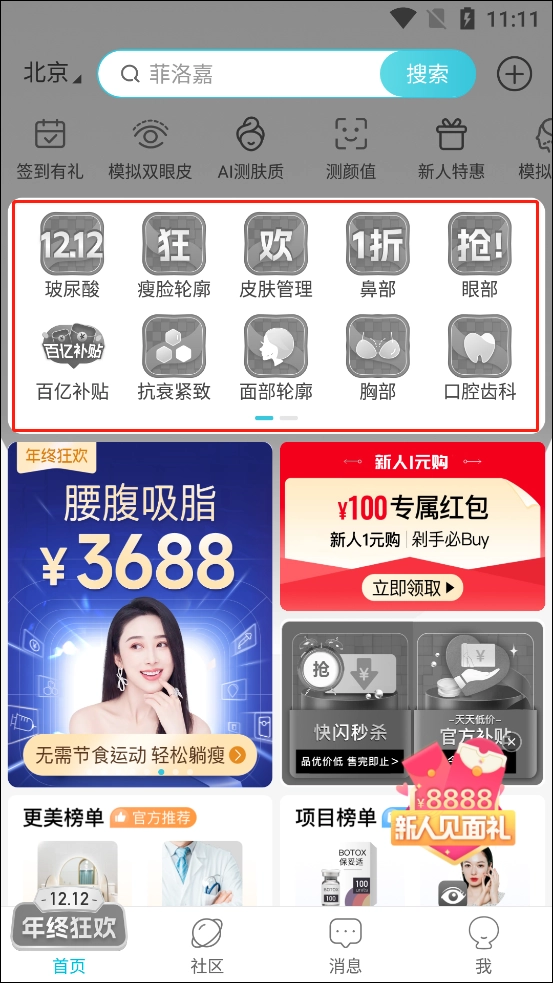 3、在商城里能够看到提供了诸如玻尿酸、气度管理、除皱瘦脸之类的服务。