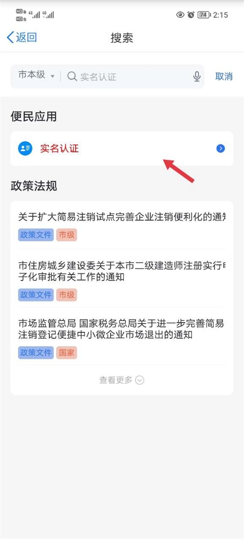 1. 打开软件后,在搜索框中输入“实名认证”。