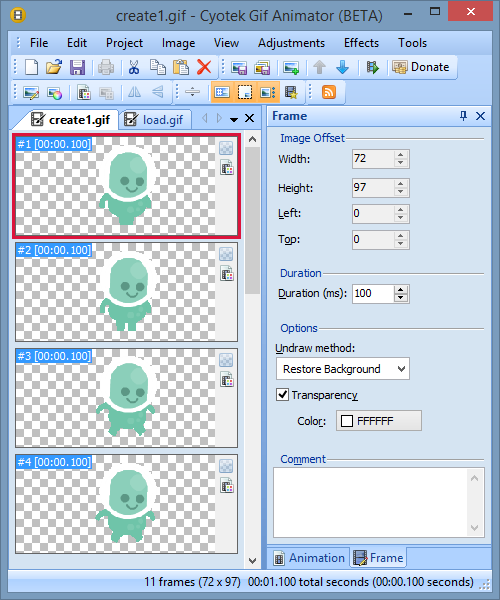 cyotek GIF动画一款用于制作GIF动画的强大应用程序。您可以创建新的动画,编辑现有的动画,并修改帧属性。除了丰富的GUI客户端外,GIF动画还包括一个强大的命令行客户端,用于在批处理场景中以及其他重复的任务中使用。【Cyotek Gif Animator软件特色】