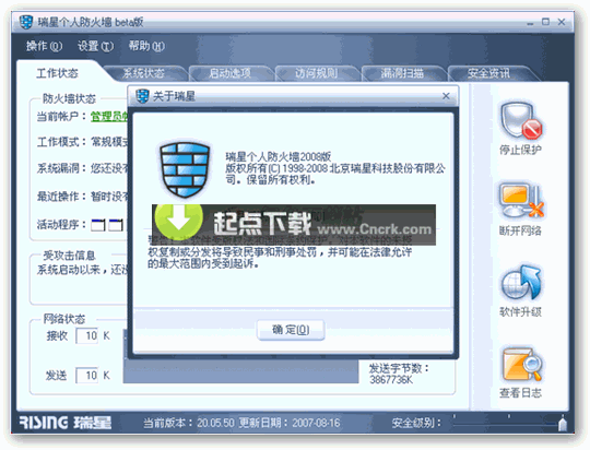 瑞星个人防火墙2008版,针对目前流行的黑客攻击、钓鱼网站、网络色情等做了针对性的优化,采用未知木马识别、家长保护、反网络钓鱼、多账号管理、上网保护、模块检查、可疑文件定位、网络可信区域设置、IP攻击追踪等技术,可以帮助用户有效抵御黑客攻击、网络诈骗等安全风险。