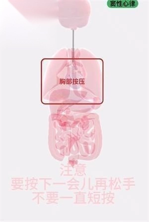 3、接下来实施心肺复苏,操作时需注意,按压下去保持一会儿后再松开,切勿持续短时间按压。