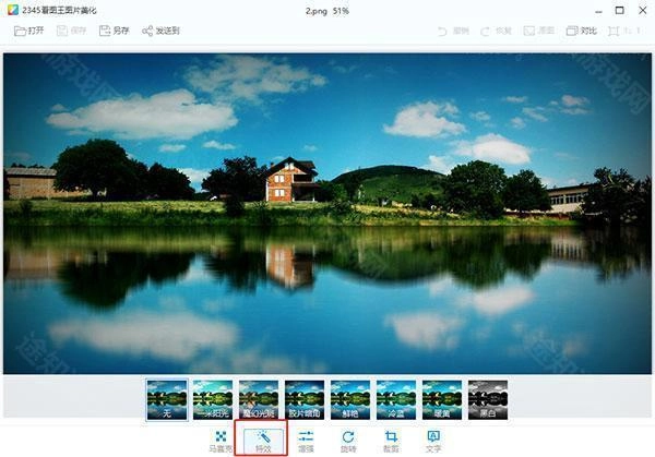 1. 在图片美化窗口中,点击工具栏上的“特效”按钮。