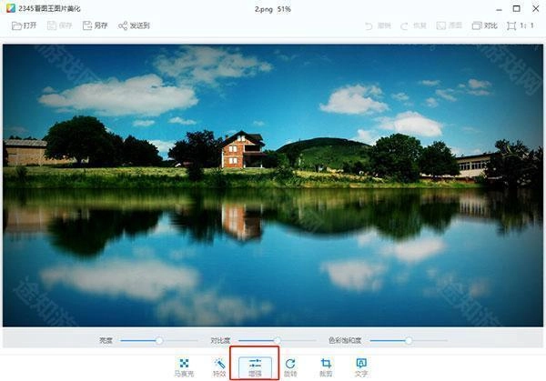 1. 在图片处理窗口中,点击工具栏上的“增强”按钮,随后就能通过鼠标移动滑块来调节图片的亮度、对比度以及色彩饱和度。