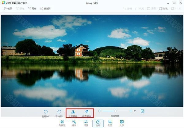 1. 在图片处理窗口中,于工具栏上点击“旋转”按钮,随即能够看到水平翻转与垂直翻转选项。