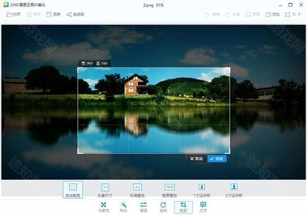 在图片处理窗口中,点击工具栏上的“裁剪”按钮,随即能看到自由裁剪、正方形、标准屏幕(4:3)、屏幕壁纸(16:9)、1 寸证件照以及 2 寸证件照等选项。其中,证件照还会实时给出关于证件照打印质量的提示。
