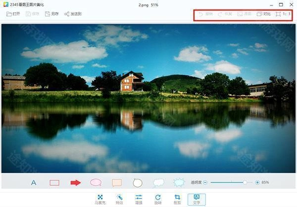 1. 在图片处理窗口上方工具栏的右侧,设有撤销、重做、原图、对比以及适屏等功能按钮。