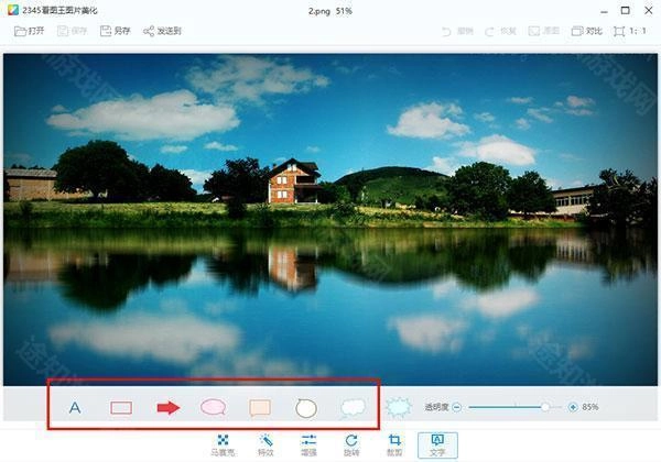 1. 在图片处理窗口中,于工具栏点击“文字”按钮或者“气泡”按钮。气泡与文字的位置能够自行设定哟~而且气泡还能按需进行缩放、旋转操作。