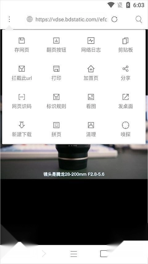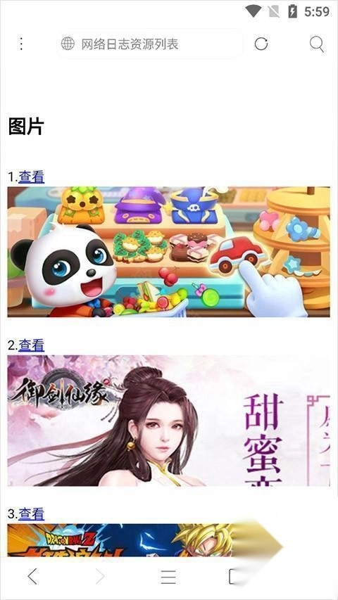 4、点击此功能,整个网页内的所有图片、视频以及音乐资源,均可通过应用嗅探获取到。