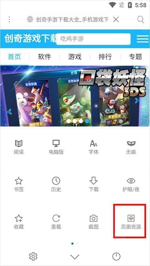 3、接着,在已打开的功能页面里,会出现一个【页面资源】功能选项。