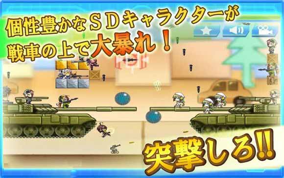 对战SD战争游戏还搭载了收集要素,游戏到了后期可以使用的角色会越来越多,角色一共有40名,分为“中距离攻击型”“远距离攻击型”“爆弹攻击性”“防卫型”“回复型”等多种不同的类型。在战斗中使用什么样的角色,战车配置在什么地方,以什么样的角度进行攻击等等的因素都会影响到战局。女孩子们非常可爱,与硬派的战车放在一起也没有很大的违和感,喜欢这类轻松的射击游戏的玩家不妨尝试一下吧!