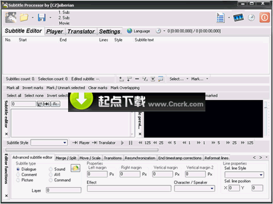 一个字幕编辑处理器,可以用于修复、翻译字幕文件。它使用方便,可以集成在播放器中;功能强大,可以对字幕进行合并或分割,也可以调整时间实现字幕与影片同步