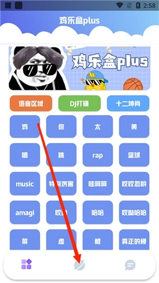 1、打开鸡乐盒plus软件后,如以下图示,点击界面中间的篮球图标。