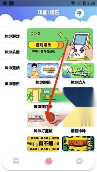 2、进入游戏的更多游戏界面后,点击“坤坤打篮球”选项,除了这款游戏,其他游戏也都能玩,每一款都特别好玩。