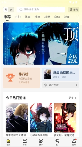 2、要是在首页未能发现心仪的漫画,不妨点击上方的搜索栏,搜索自己钟爱的漫画作品。