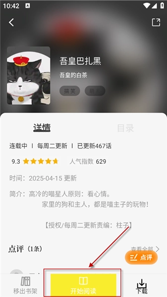 3、点击进入搜索结果的详情页面,找到并点击“开始阅读”按钮,随后即可开启阅读。