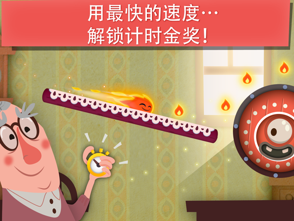 反应足够快 有胆你就来小火苗大冒险游戏前期非常简单,但是随着关卡的逐渐开启,越来越快的转轮和措手不及的炸弹等障碍物靠的就是你快速的反应能力啦。如果花越少的时间越过转轮来到公主身边,就能获得时间金奖哦,我的心得就是一定不要傻傻每个转轮都去跳哦,很多地方是有捷径的,玩多了就能找到快速捷径,三下五除二轻松迅速来到纸公主的身边。