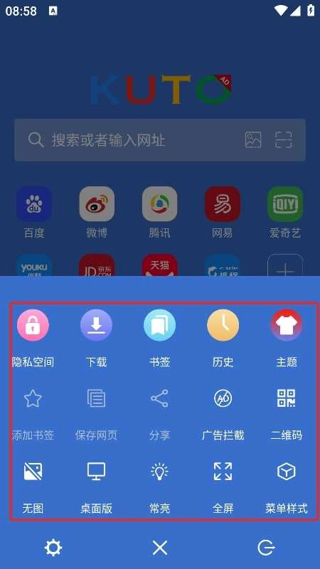 1、kuto浏览器的另一大特点便是智能搜索功能,它体积不足2MB,功能却极为强大。