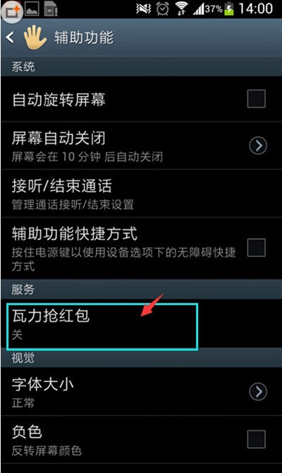 1. 开启瓦力抢红包程序,接着点击那个黄色的长方形区域。