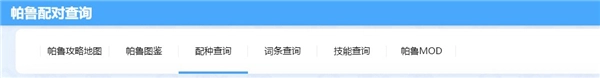 除了基础的宠物合成配种表,还有帕鲁图鉴、词条查询、技能查询、帕鲁攻略地图等多个板块的工具能供大家使用。