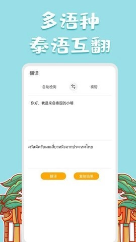 1无论是英语、中文亦或是其他语种,皆可快速且精准地与泰语相互翻译,让交流不再受语言阻碍。