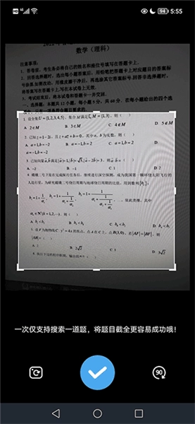 2. 对题目进行拍照操作,完成后点击对勾。