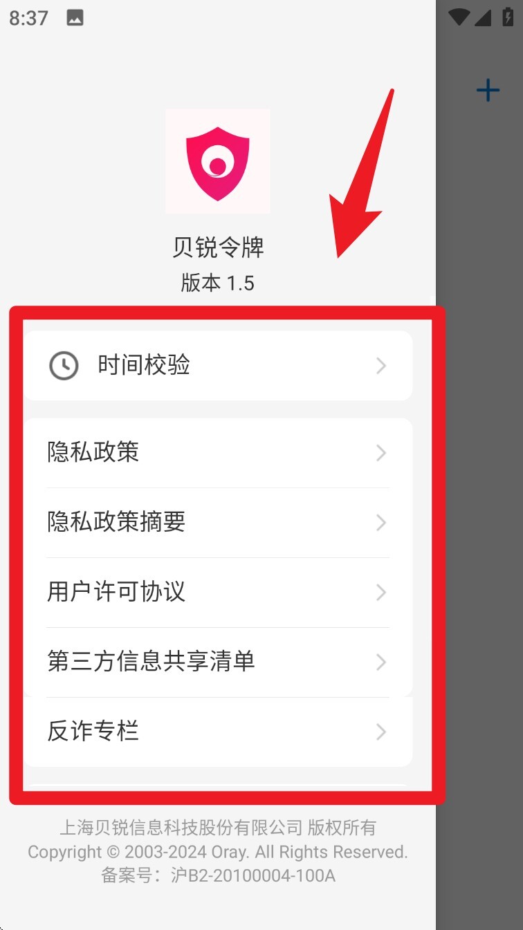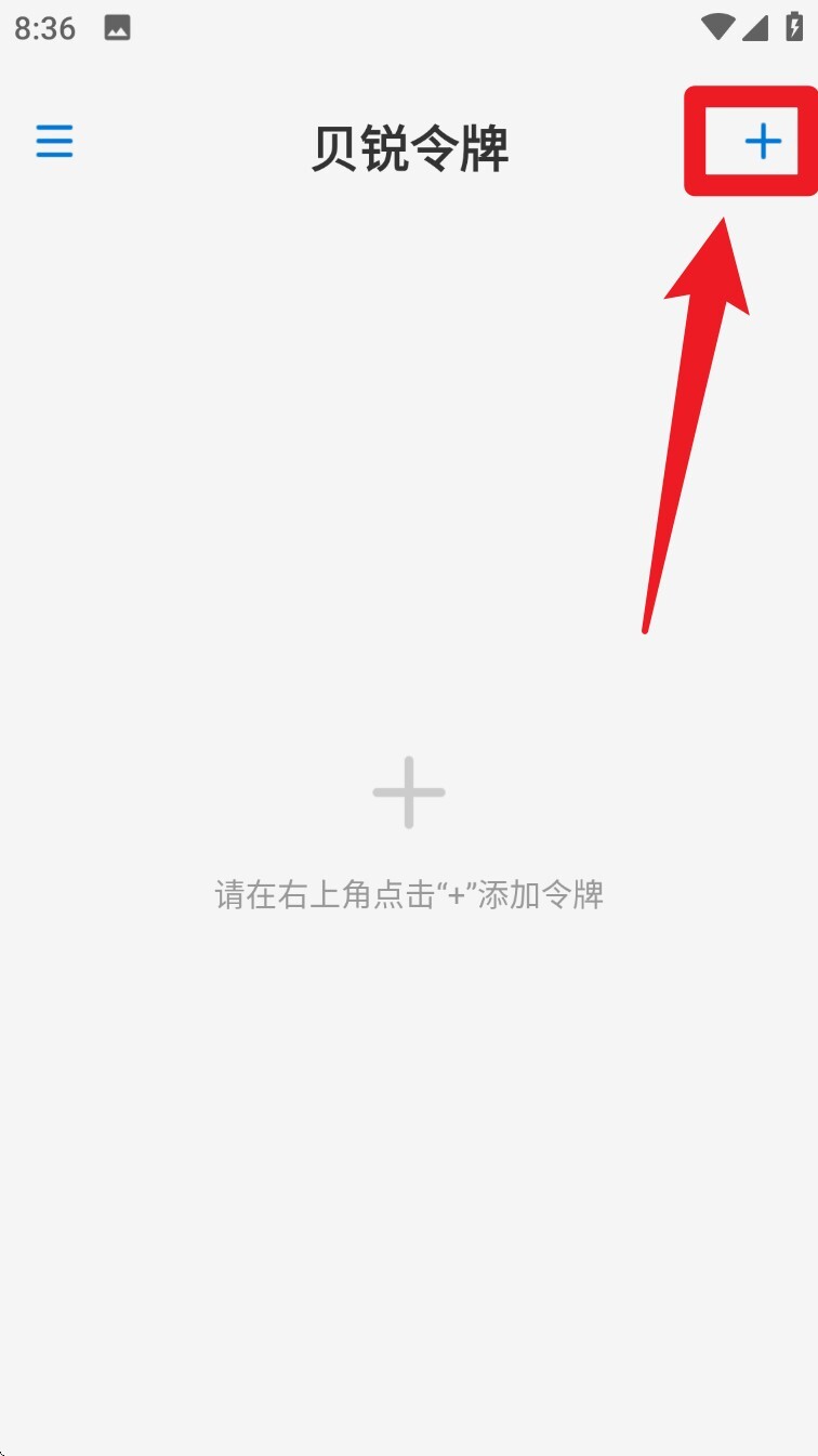 1. 进入贝锐令牌首页,点击右上角的「+」按钮,就能进入添加账号的页面。
