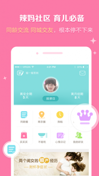1、同龄社区:与同龄辣妈畅聊孕育话题!2、同城妈妈:与您携手呵护宝贝成长!
