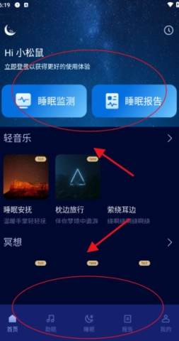 2、进入首页后,您将看到睡眠监测和报告两大服务,一键点击,所有信息唾手可得。