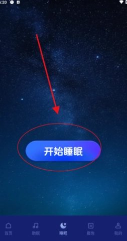 4、点击界面中间的睡眠按钮,即可启动监测模式,系统将自动生成您的睡眠报告,无需担心!