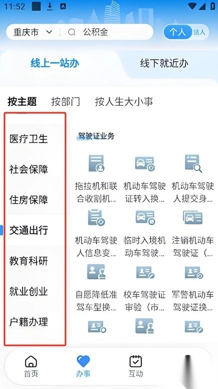 2、在办事模块中,采用详细分类的方式,使得各类服务查询变得更为简便。
