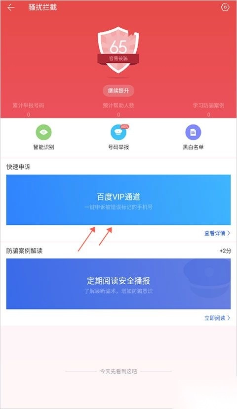 2. 随后点击百度vip通道,输入被标记的号码。
