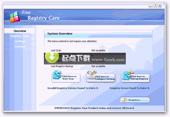 Free Registry Care是一款简单易用的注册软件程序,本软件使用高性能的算法迅速诊断错误的地方以及孤立的引用。并且能自动的修复它们 Serial : RC1999200
