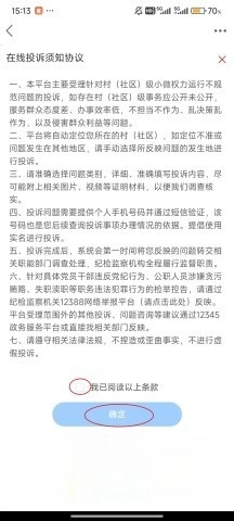 6、输入投诉相关信息,确认阅读后点击“提交”。