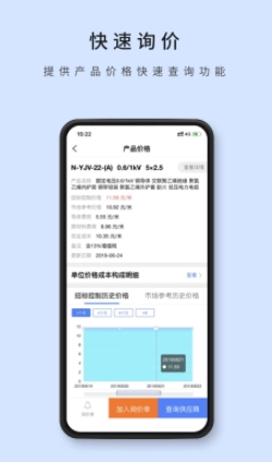 提供产品价格快速查询功能,用户可根据自身需求,选择产品生成询价单,快速查阅产品的实时和历史价格,洞悉产品价格变化趋势和程度。物资云在线实时提供产品的执行标准、工艺技术规范、价格等多维度参考,常见型号全面覆盖、工艺规范严谨透明、定额数据权威可信、原料行情在线监测、价格在线实时更新、历史价格追溯查询。