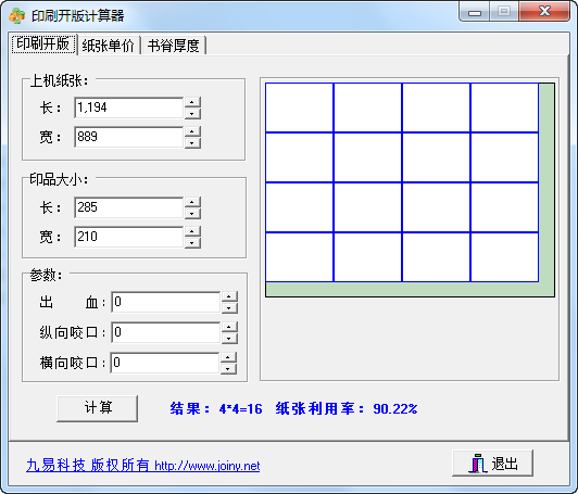 它通过电脑的精准计算,穷尽所有排版方式,你只要用鼠标轻松一点,马上就得到最省纸的开版方式,对于浪费太大的尺寸,还会建议适当缩小。