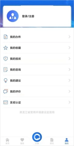 1. 打开黑龙江全省事应用程序,进入首页后,点击右下角“我的”选项,进行个人信息管理操作。