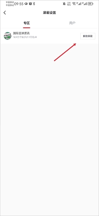 5、若想解除已屏蔽的专区,可在专区内操作,点击“解除屏蔽”即可。