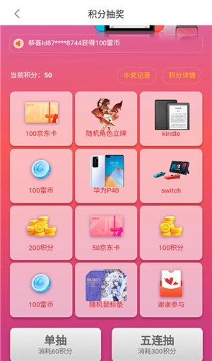 3、接着凭借所获得的积分,在【积分抽奖】界面抽取大奖!