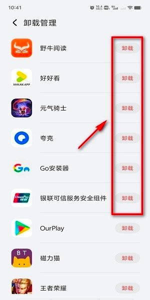进入“卸载管理”界面后,找到要删除的应用,点击后面的“卸载”;