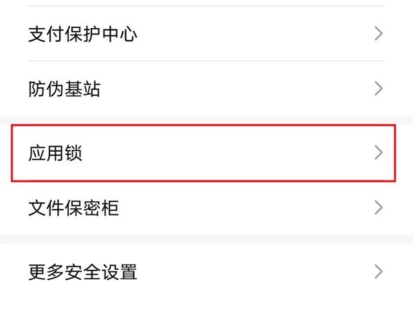 进入“安全”界面后,下拉找到“应用锁”功能,点击一下;