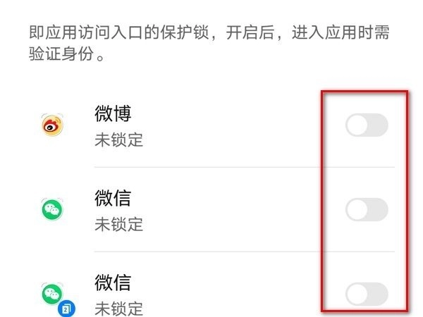 设置好密码后,选择要加密的应用,这里选择荣耀应用市场,将后面的按钮打开即可!