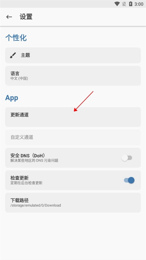 2、然后选择更新通道选项。