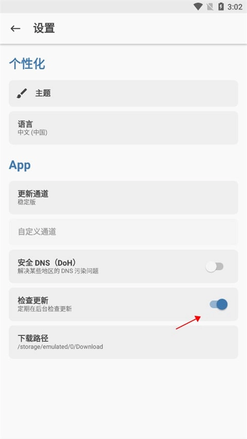 3、选择完成之后,把检查更新打开有新版本就会自动更新了。(注意需要加速网才能更新,没有的小伙伴们可以收藏页面,有新版本小编会及时更新的)